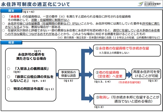 永住許可制度の適性化Q&Aより
